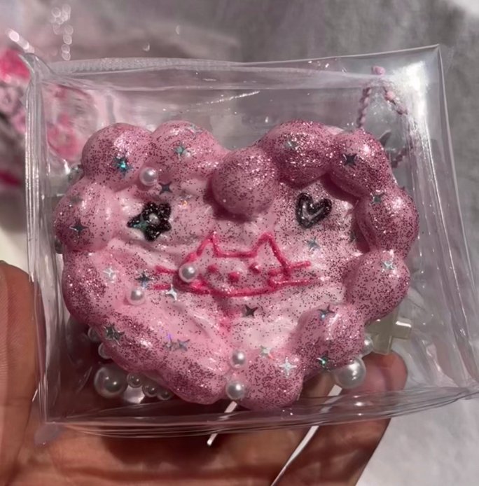 Fall in love at first sight with our Purr-fect Love Cake Squishy! This enchanting creation combines three irresistible elements: romance, sweetness, and feline charm. The luxurious heart-shaped cake base swirls with elegant white and passionate magenta hues, creating a beautiful marble effect that symbolizes pure love. Topped with glittering “buttercream” that sparkles like morning dew, each cake is then lovingly adorned with a unique hand-painted kitten portrait – no two kitties are exactly alike! Delicate pearl accents add a touch of royal elegance to this already magnificent piece. Experience the ultra-soft, slow-rising rebound that makes every squeeze feel like receiving a warm, furry hug. This isn’t just a squishy – it’s a work of art that celebrates love and companionship!